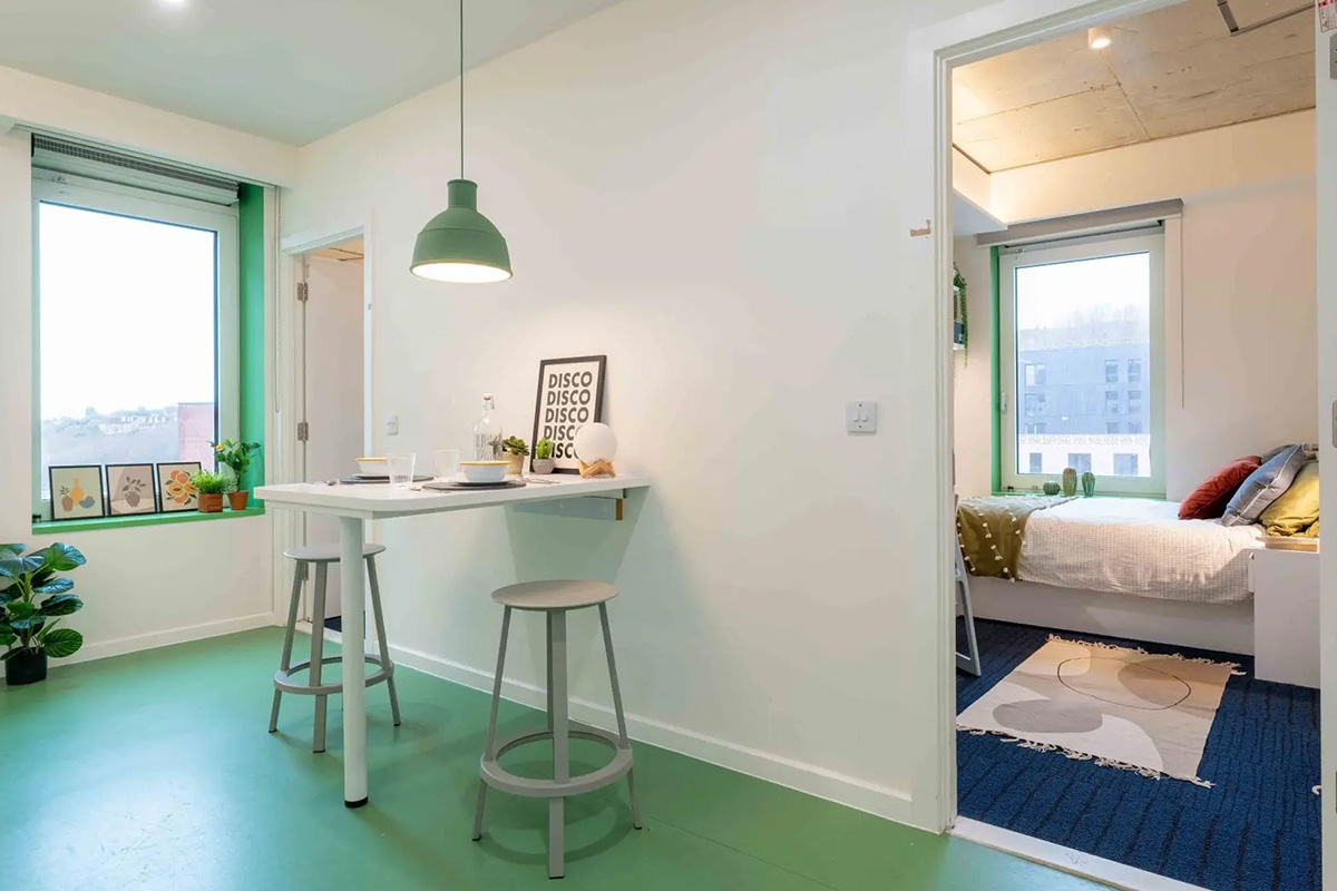 Ensuites: Room with Bathroom. Share the kitchen with another 6 students. Studio: 100% privacy. Kitchen & Bathroom inside the room. Lower Level, Mid. Level, Upper Level: Prices change according to the floor level. Silver, Bronze, Gold: rooms differentiate only in square metre. Check webpage.