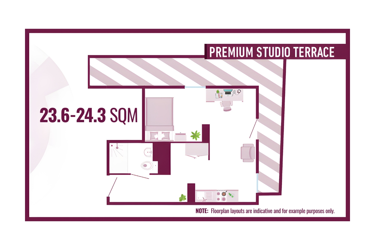 Combining generous space with a private terrace, this top-floor studio includes a stylish en-suite, large kitchen, ample storage, and a quiet study area — ideal for a premium student lifestyle.