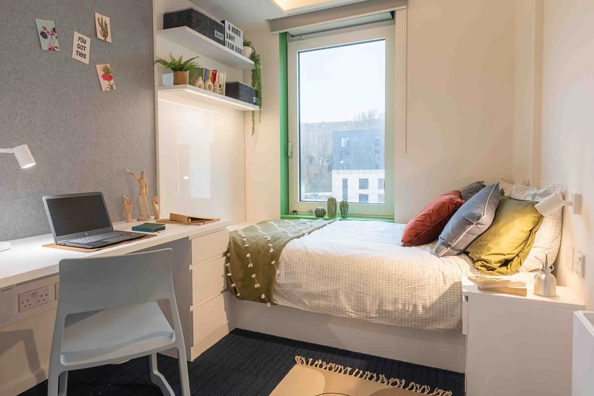 Ensuites: Room with Bathroom. Share the kitchen with another 6 students. Studio: 100% privacy. Kitchen & Bathroom inside the room. Lower Level, Mid. Level, Upper Level: Prices change according to the floor level. Silver, Bronze, Gold: rooms differentiate only in square metre. Check webpage.
