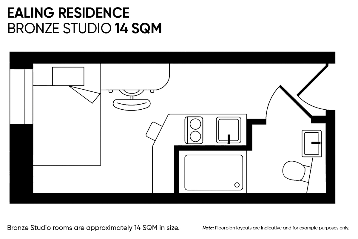 These student rooms come with a bed, en suite bathrooms, study area, storage space and kitchenette.