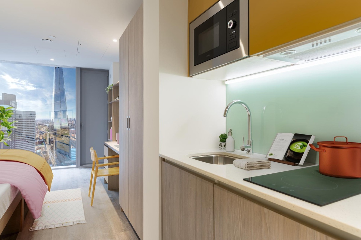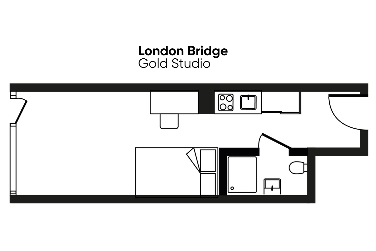 Located in the heart of London Bridge, the Gold Studio offers a spacious and self-contained living environment designed for comfort and independence. Measuring approximately 19–20 sqm, it provides a bright, airy atmosphere enhanced by full-length windows and air cooling for year-round comfort.
